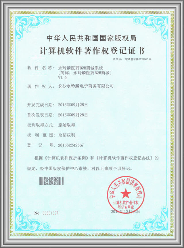 公司是一家專為健康產業提供數字化賦能的產業互聯網公司,是國內唯一一家同時擁有生產企業端、供應端、采購端、合伙人端、醫院端、醫生端、用戶端的大健康全產業鏈數字化平臺的公司。擁有互聯網藥品交易資格證【國A20170007】(目前全國共52張牌照)、互聯網醫院執業許可證、互聯網藥品信息服務資格證【(湘)經營性-2016-0005】、電信增值業務許可證【湘B2-20160089】、二級等保認證、食品經營許可證【JY4301000107016(1-1)】等資質證書,軟件著作權專利16個。